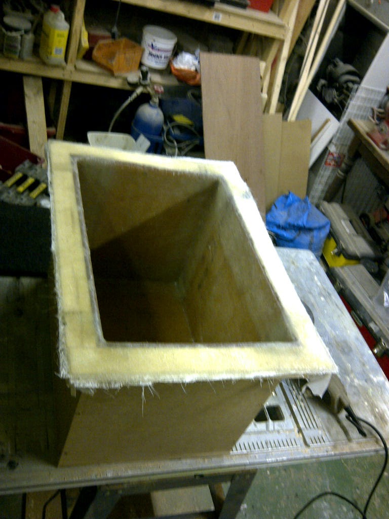 I think there is some kind of law that says the gas bottle must be completely sealed from the inside of the vehicle (or in a separate external box), weather this is true or not i thought it was best for our own safety, especially after smelling Bobs leak from his gas bottle in the motorhome last year. I was initially going to make a mold from MDF and cast a GRP box from it, but decided to make an the MDF box and cover it internally in GRP to ensure it was airtight.